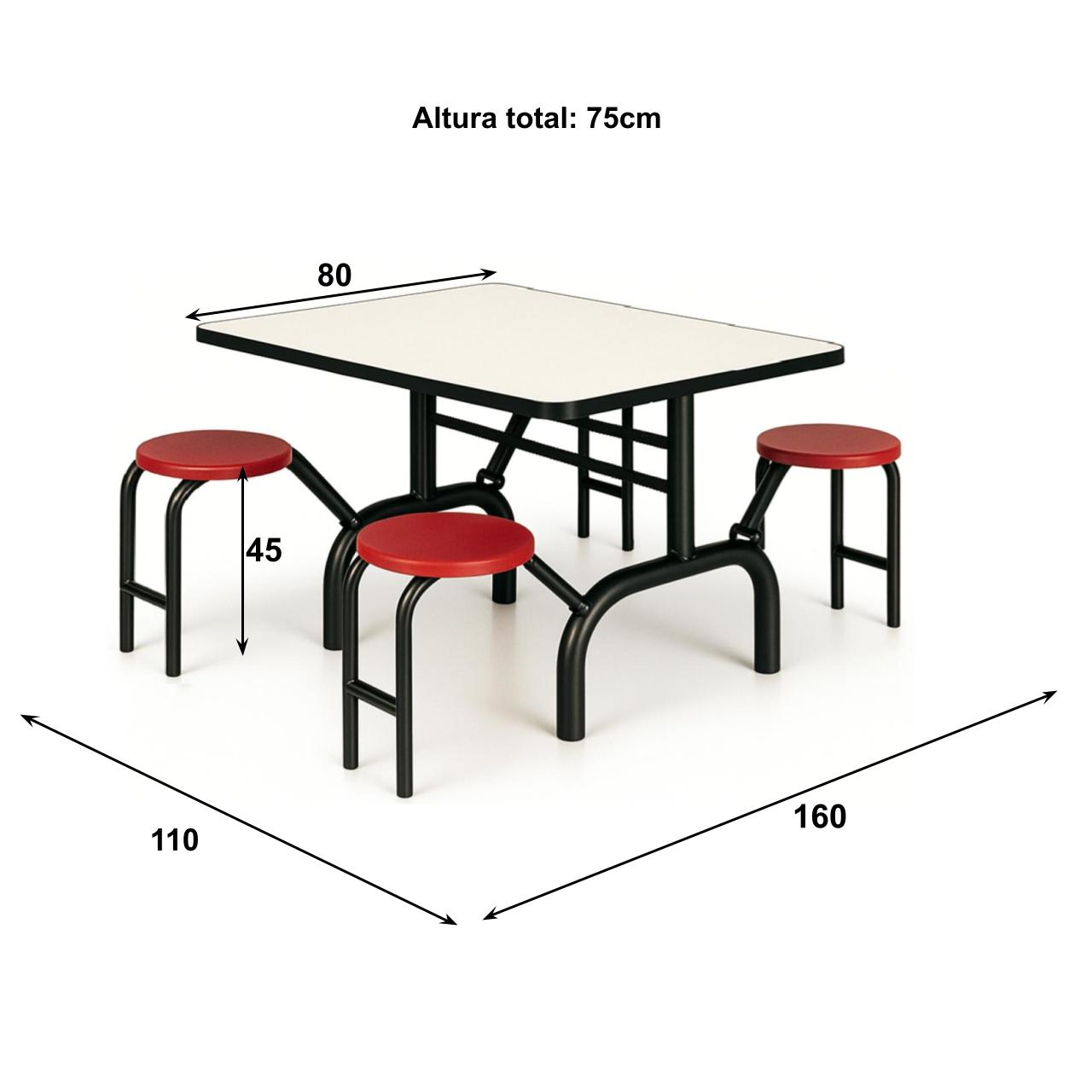 Mesa de Refeitório Coletiva com 4 Lugares Assento Vermelho