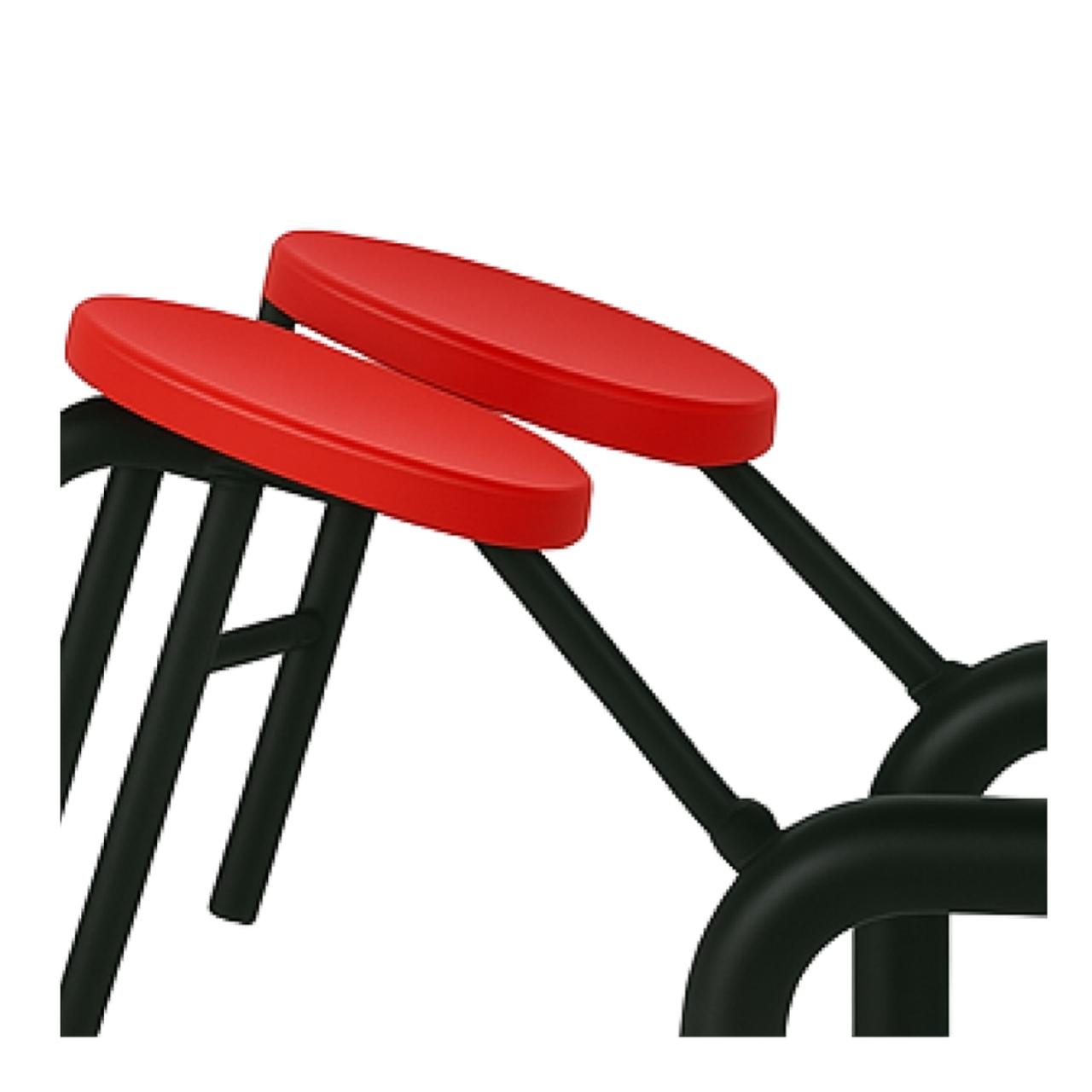 Quatro assentos circulares fixos em polipropileno injetado de alta densidade.