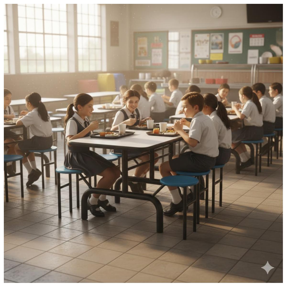 Mesa coletiva de refeitório com bancos Escamoteáveis integrados, ideal para uso em ambientes institucionais, industriais, escolares e corporativos. Estrutura metálica reforçada e assentos individuais acoplados garantem durabilidade, praticidade e organização do espaço.