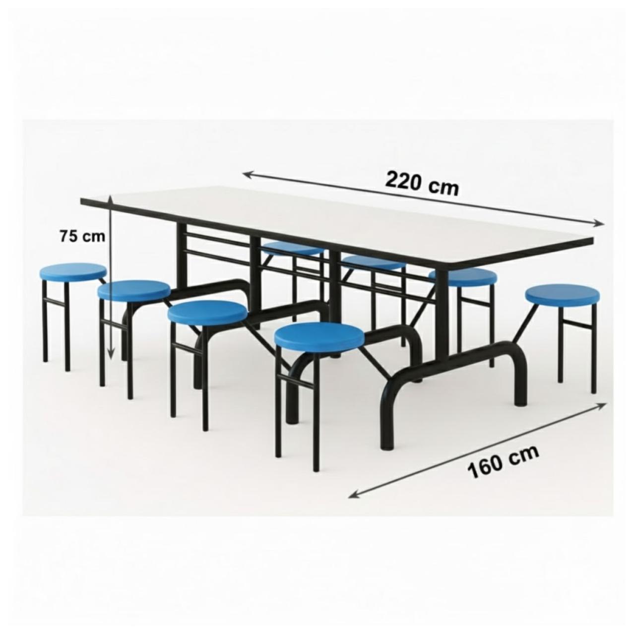 Mesa de Refeitório Coletiva Escamoteável com 8 Lugares Assento Azul
